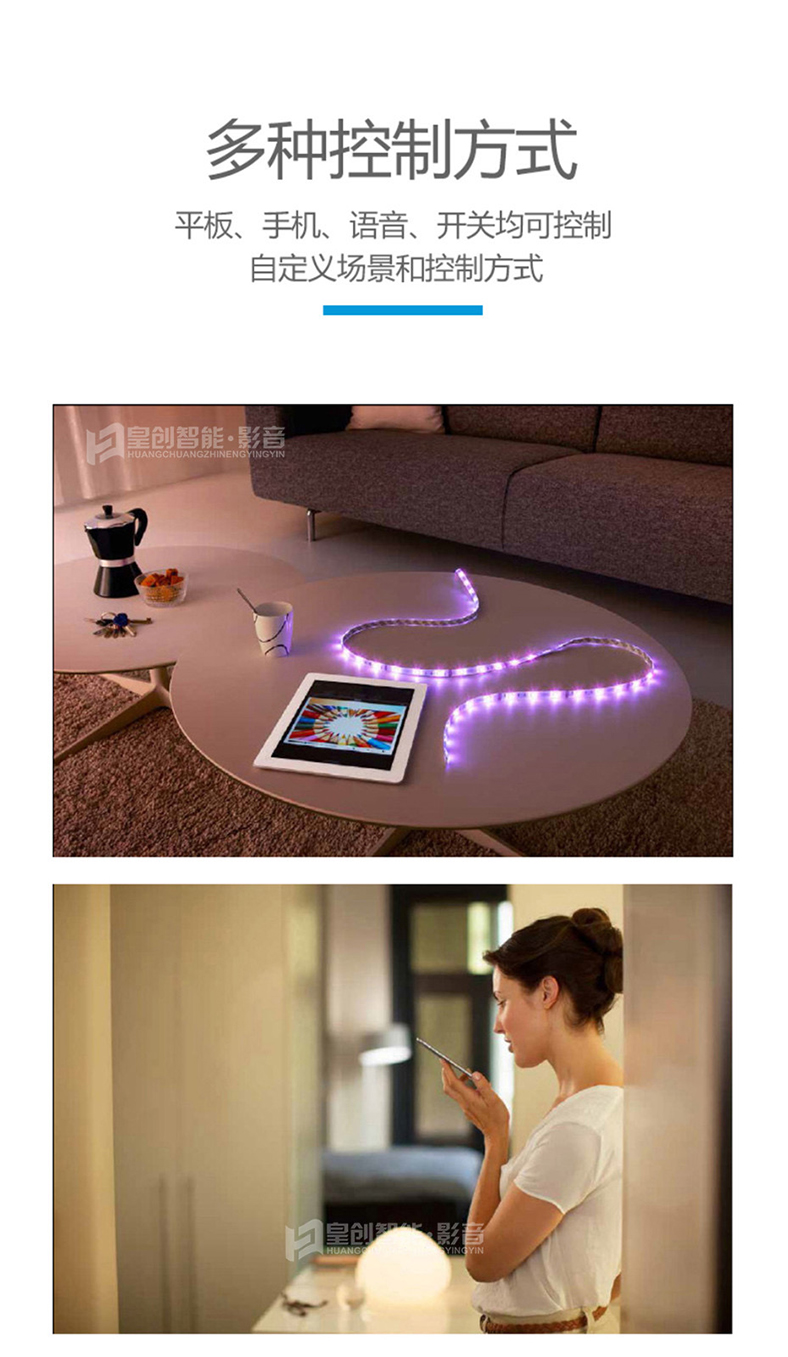 ★燈光調節:用于燈光照明控制時能對電燈進行單個獨立的開、關、調光等功能控制,也能對多個電燈的組合進行分組控制,方便用不同燈光編排組合形式營造出特定的氣氛。